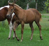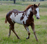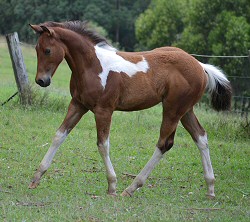2012 Chestnut Paint Bred filly - Born 25.09.2012 Sire: 'The Big Gun' (USA) Dam: 'Sheza Grand Sensation' 'Jemima' was retained by the stud and has turned into an exeptional broodmare. |