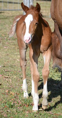 Chestnut Overo gelding - Born 22.08.2017 Sire: 'Just Shameless' (imp/exp/dec) Dam: 'CP She Makes Me Smile' 'Teddy' has found a lovely show and performance home in Armidale. We will sure watch his career with interest. |