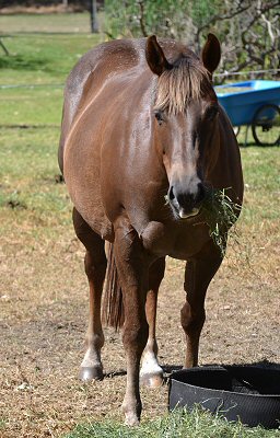 | This lovely mare has proven to be a wonderful mum producing now four strong healthy and correct foals. She is a most unusual colour which we are stuggling to describe ... she is liver chestnut but a most unusual shade. Another of Olivia's daughters she has type, temperament and pedigree to go with her good looks.