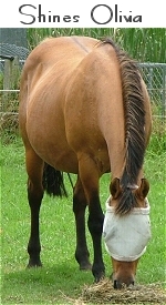 Just Shameless (imp/exp/dec) x Shines Olivia (QH) 2005 Liver Chestnut Paint Bred Mare - PHAA 8941B HERDA n/n, PSSM1 n/n Colour genetics: e/e, A/A Page updated 19.11.2016 |