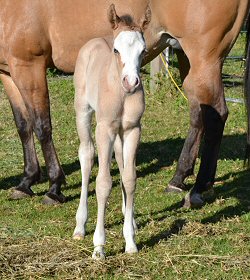 First Down (imp) x Up Close N Shameless 2013 Dun Splash Overo Filly - PHAA pend Genetic colour results: E/e, A/a, O/n, SW1/n, D/n PSSM1 neg - HERDA neg Page updated 27.09.2016 |