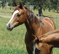 In 2005 Jane and May had fun together throughout the year at home, at Pony Club and at the PHAA Youth Convention at Grafton. May's mum is our favourite old girl - the Quarter Horse mare 'Shines Olivia' - known affectionately as 'Mother Gorgeous' - she has had a bunch of 'Shameless foals' all of whom are gorgeous. May is now retired from breeding and enjoying herself being a paddock ornament. |