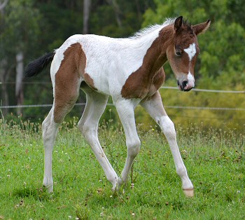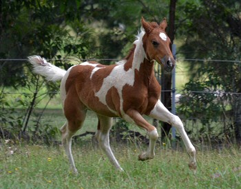 Barlink Heza Macho (imp) x Well Connected 2023 Chestnut Paintbred Splashed White Filly 'Susie' has now turned 2 years old and is 13.2hh . We had planned to grow her on to eventually join our broodmare band. Sadly she is not likely to reach the size we are after, so we are reluctantly offering her for sale. She is likely to mature a bit over 14hh so will be eligible for Quarter Pony registration. She is pretty, has a very solid Quarter Horse type build and attractive markings. With her sweet nature, she will suit a younger rider who is after a versatile and affectionate little horse. She has a 100% imported American pedigree which boasts many legendary Hall of Fame sires. For Sale $4,500 Click here for extended pedigree |
